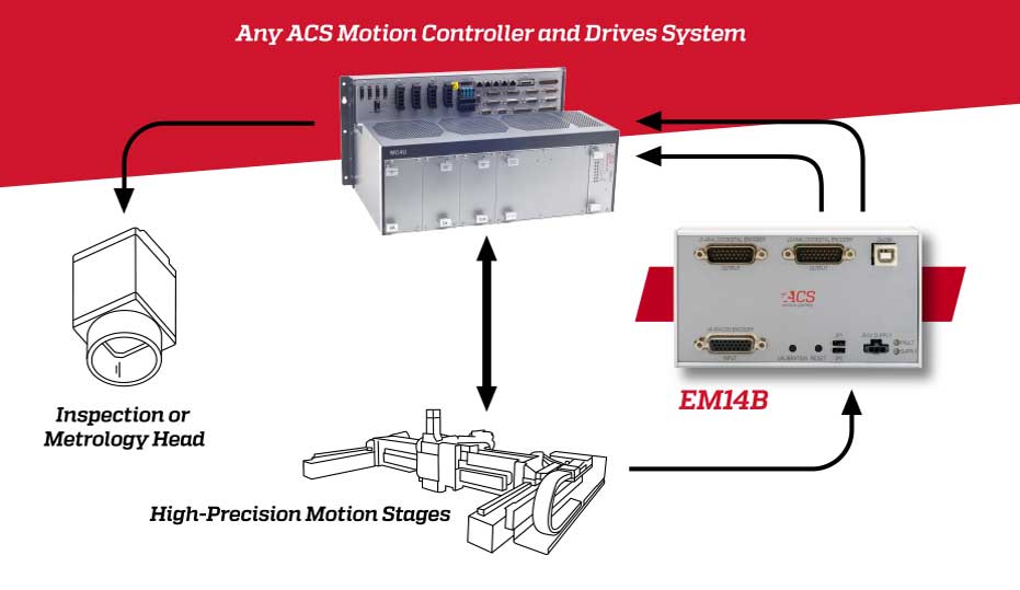 - Enables sub-micron accuracy triggering of devices synchronized to a digital AqB encoder